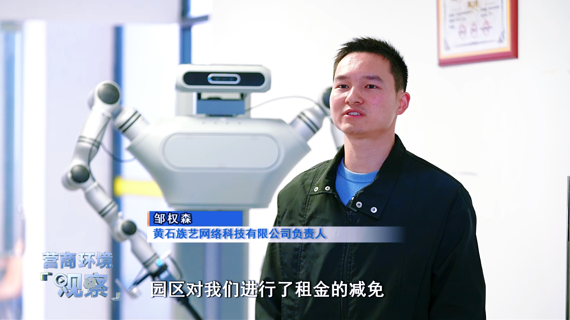 黄石族艺网络科技有限公司负责人 邹权森:园区对我们进行了租金的减免,以及7.5万元的股权投资,目前我们已经是一家高新技术企业,深耕物流行业的机器人研发。