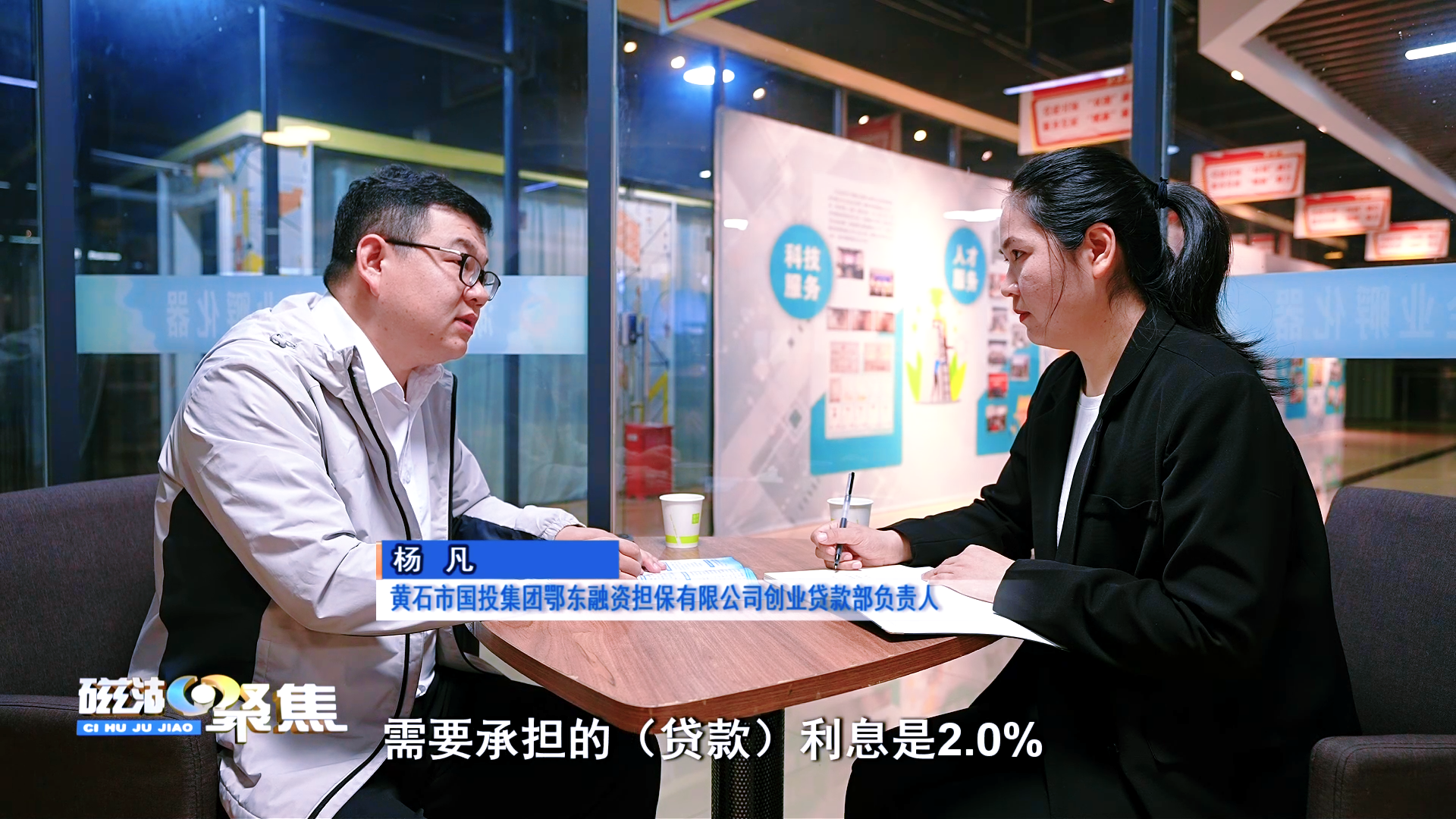 黄石市国投集团鄂东融资担保有限公司创业贷款部负责人 杨凡:你这个500万元,如果直接向银行申请(贷款),(利率)应该是4.5%左右。现在创业贷我们跟各个合作银行进行谈判,利率是4.0%,财政(补)贴50%,实际您这边500万元需要承担的(贷款)利息是2.0% ,一年大概就是10万块钱。
