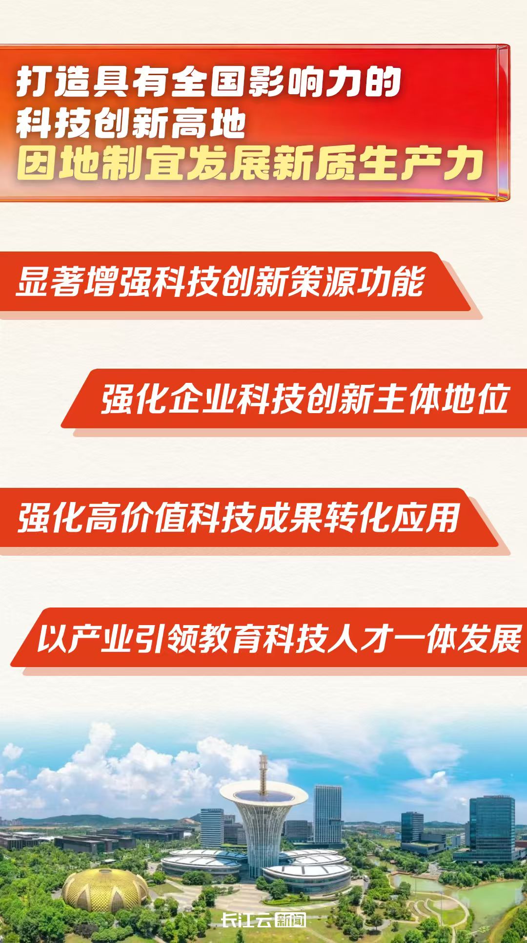 深刻把握新一轮科技革命和产业变革历史机遇,坚持“四个面向”战略导向,深入实施科创引领战略,统筹教育强省、科技强省、人才强省建设,加快推进科技创新和产业创新深度融合,抢占科技和产业发展制高点,不断催生新质生产力。
