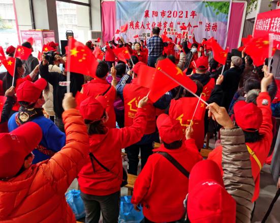 11月17日上午,湖北襄阳六O三文化创意产业园迎来了一批特殊的客人。襄阳市残联组织开展的残疾人文化进家庭“五个一”活动正在这里举行,来自城区的80个残疾人家庭代表及其亲属,在助残志愿者的帮扶下参加了活动。