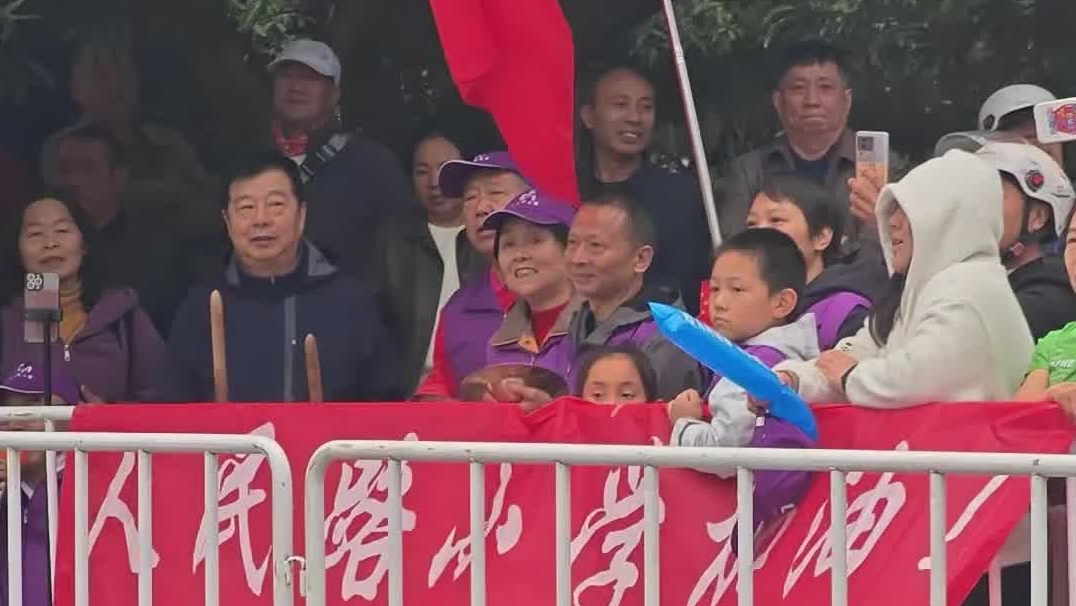 2025襄阳马拉松,市民们在凤雏大桥下热情的为全马选手们加油助威!