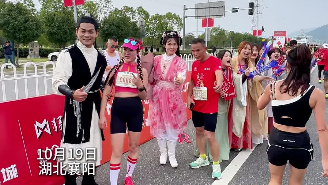 10月19日凌晨,2025襄阳马拉松现场,华山论剑主题“侠义公交”炫酷亮相
