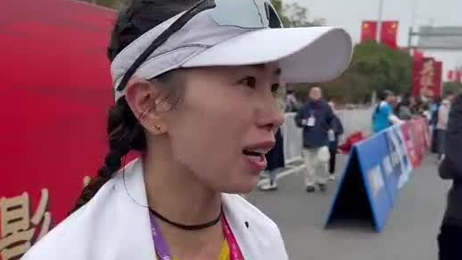 2025襄阳马拉松,半马女子组第一名伍玲到达终点