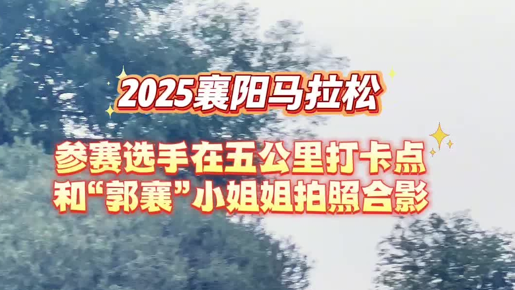 2025襄阳马拉松,参赛选手在五公里打卡点和“郭襄”小姐姐拍照合影