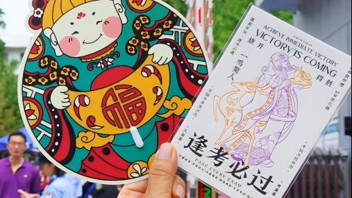 青春逐梦 高考时刻|弟弟高举妈妈牌葵花为姐姐陪考祈福