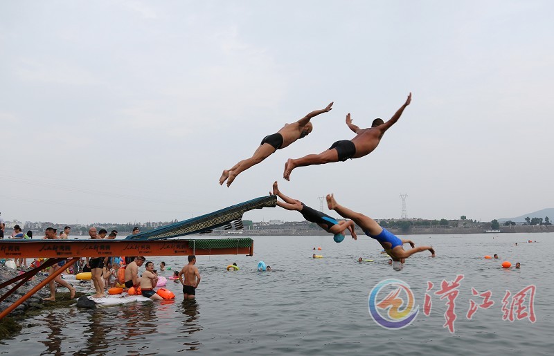 在樊城汉江火星观码头,有一群跳水爱好者,把跳台当舞台,一展英姿。他们用各自的技巧,或空中飞舞,或摆弄造型,或飞身一跃,犹如江上飞人,引来许多休闲、纳凉市民的围观和赞叹。一些爱好摄影的市民还拍下许多精彩瞬间。