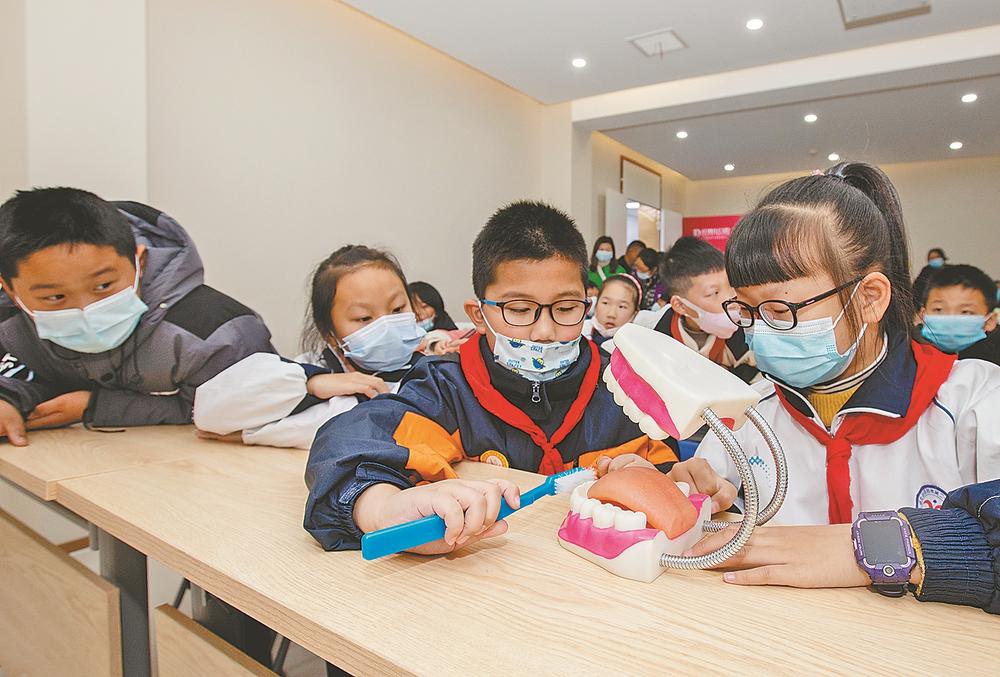 11月28日,孩子们在牙博仕口腔学习爱牙护牙知识。