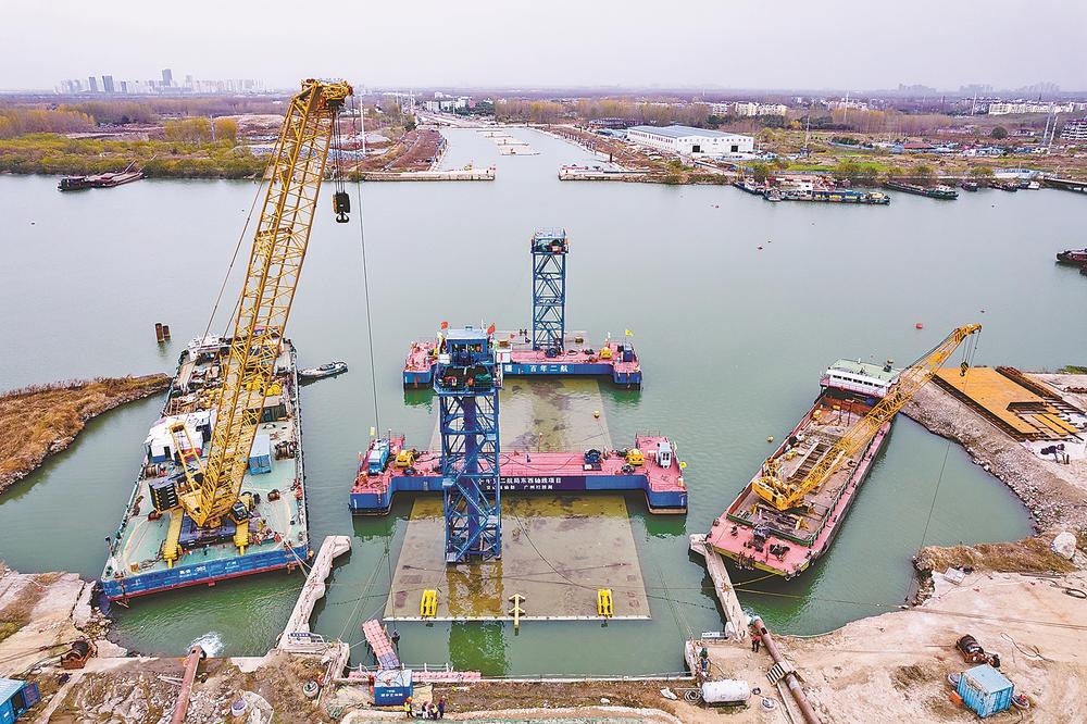 11月21日15时50分,素有“千里汉江第一隧”之称的东西轴线鱼梁洲隧道西汊首节沉管顺利下沉,与岸堤精准对接,这意味着沉管安装开启“加速度”。