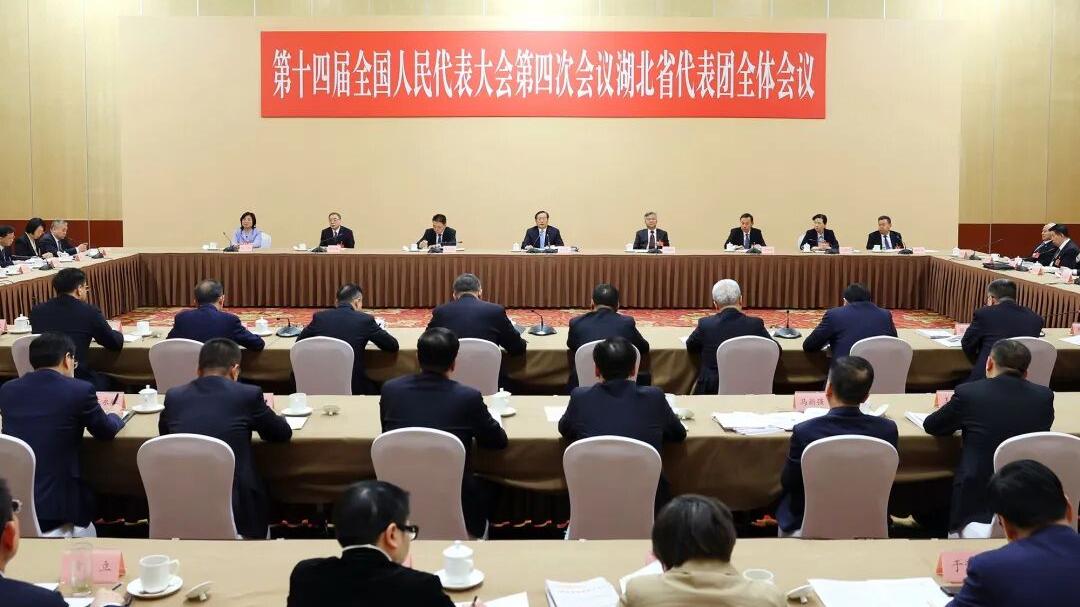 湖北代表团举行全体会议 审议全国人大常委会工作报告和“两高”工作报告 王忠林主持并发言 李殿勋等参加