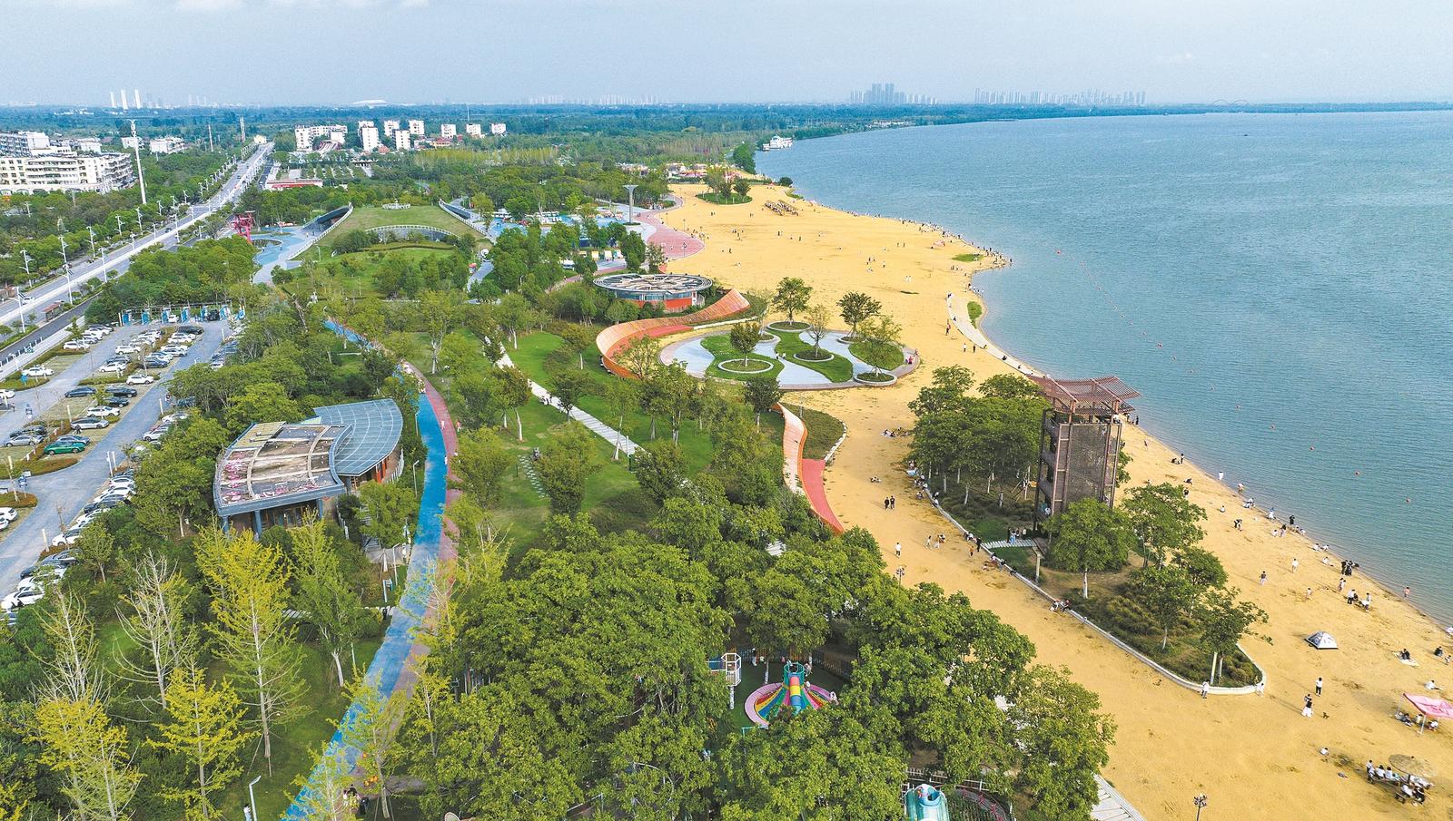 东津新区:水清岸绿生态美 白鹭翩跹入画来