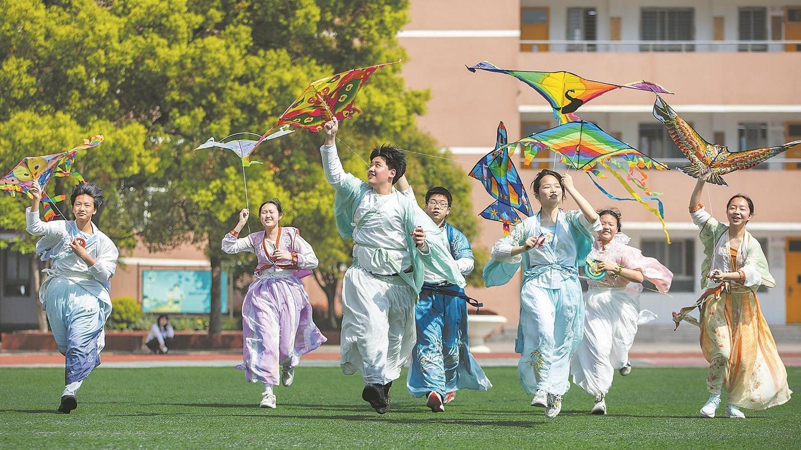 市诸葛亮中学:穿汉服 放风筝