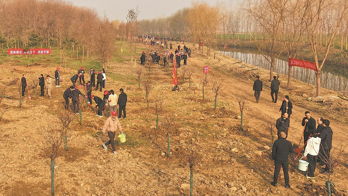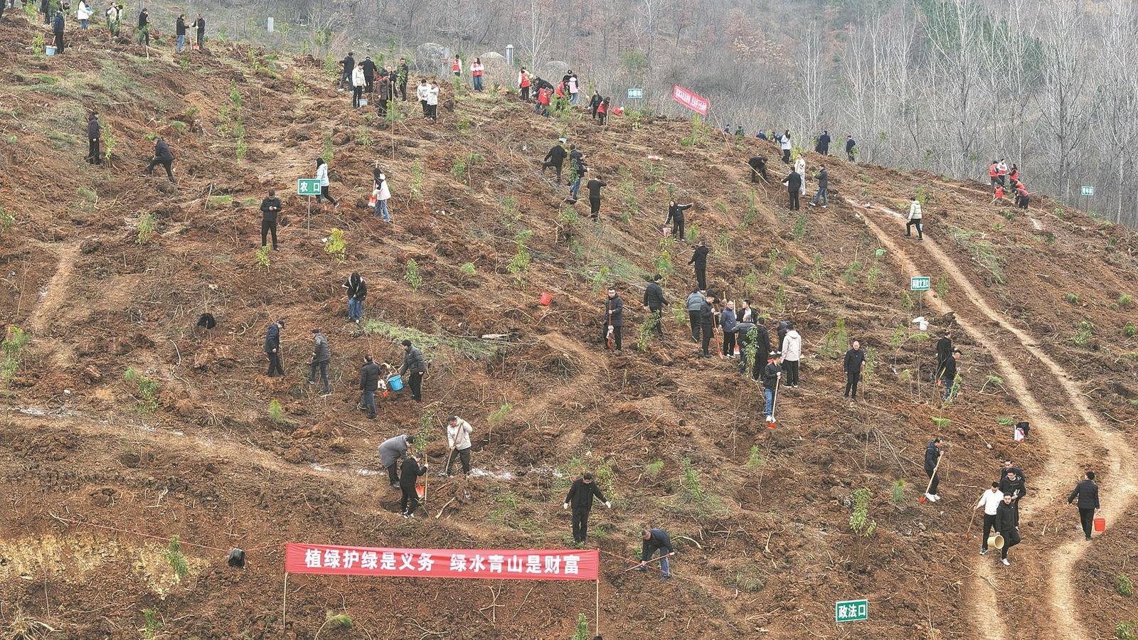 襄城区卧龙镇:500多名干部职工义务植树添新绿